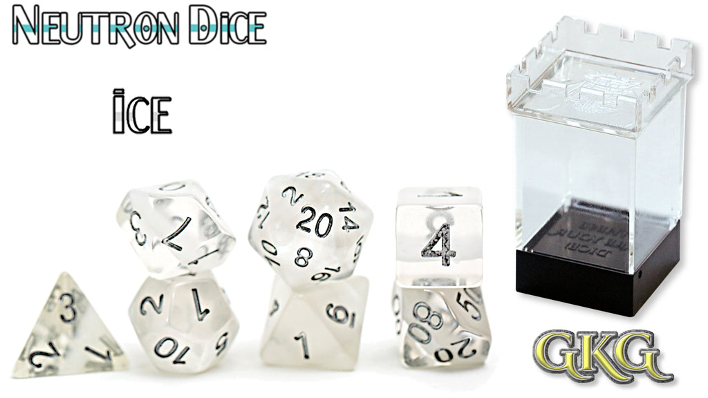 When viewed from the side they appear as 3 layers, but when viewed from the top or bottom, the appearance changes and they suddenly look semi-solid with numbers that seem to float above a colored surface!  View them from an angle, and suddenly they look like they’re 2-layers!  Nothing beats the beauty of a Neutron Die!