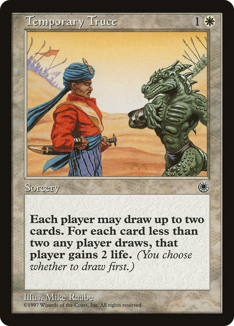 Each player may draw up to two cards. For each card less than two a player draws this way, that player gains 2 life.
