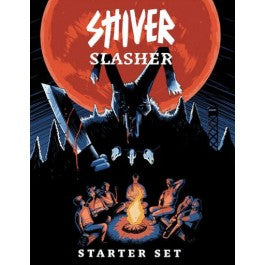 Long time horror veteran? Lover of axe murderers, chainsaw wielding lunatics and nightmarish shuffling villains? Then SHIVER Slasher is for you! This starter set contains everything you need to get started with playing SHIVER & includes: A SHIVER Starter Rulebook with all the essential rules you'll need to start playing SHIVER as both a player and Director (GMs) with a gorgeous alternate cover*; A set of dice to get rolling on your SHIVER adventure; A Slasher story for you to get started playing with; A set of pre-filled character sheets for you specific story; A gorgeous themed box to store it all in. *The SHIVER Starter Rulebook contains all the game rules you need to start playing as well as character creation rules for characters up to level 5. It is perfect for new players starting out with SHIVER. It does not contain any of the expanded information contained in the SHIVER Core Rulebook (PARSHI001EN) in the Toolbox section, which includes, The Bestiary, The Armoury, Starter Adventure, etc. So if you're a GM wanting to jump into the Director's chair with all the tools at your fingertips you may want a copy of the SHIVER Core Book and to use the starter rulebook as a copy to hand out to players to create their characters.
