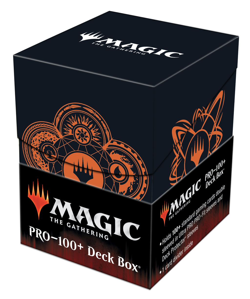 The 100+ Deck Box features vibrant, full-color artwork from Magic: The Gathering and includes a matching deck divider. Made with archival-safe, non-PVC, rigid polypropylene materials, you can store up to 100 double-sleeved cards with confidence. The self-locking lid keeps your cards securely stored when not in use, while also offering easy access. Sized for standard size trading cards.