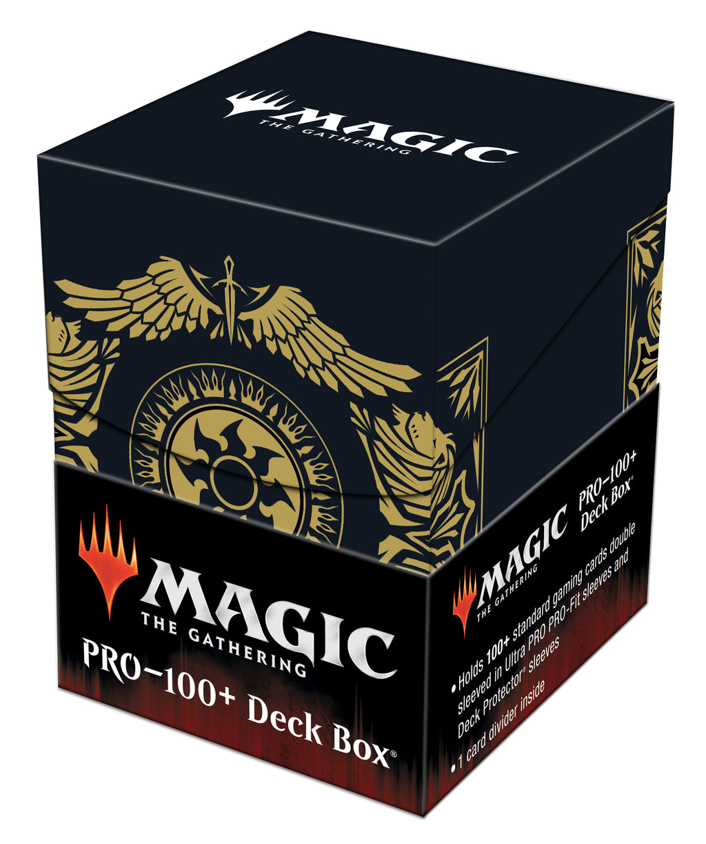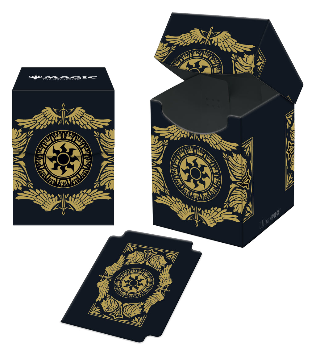 The 100+ Deck Box features vibrant, full-color artwork from Magic: The Gathering and includes a matching deck divider. Made with archival-safe, non-PVC, rigid polypropylene materials, you can store up to 100 double-sleeved cards with confidence. The self-locking lid keeps your cards securely stored when not in use, while also offering easy access. Sized for standard size trading cards.