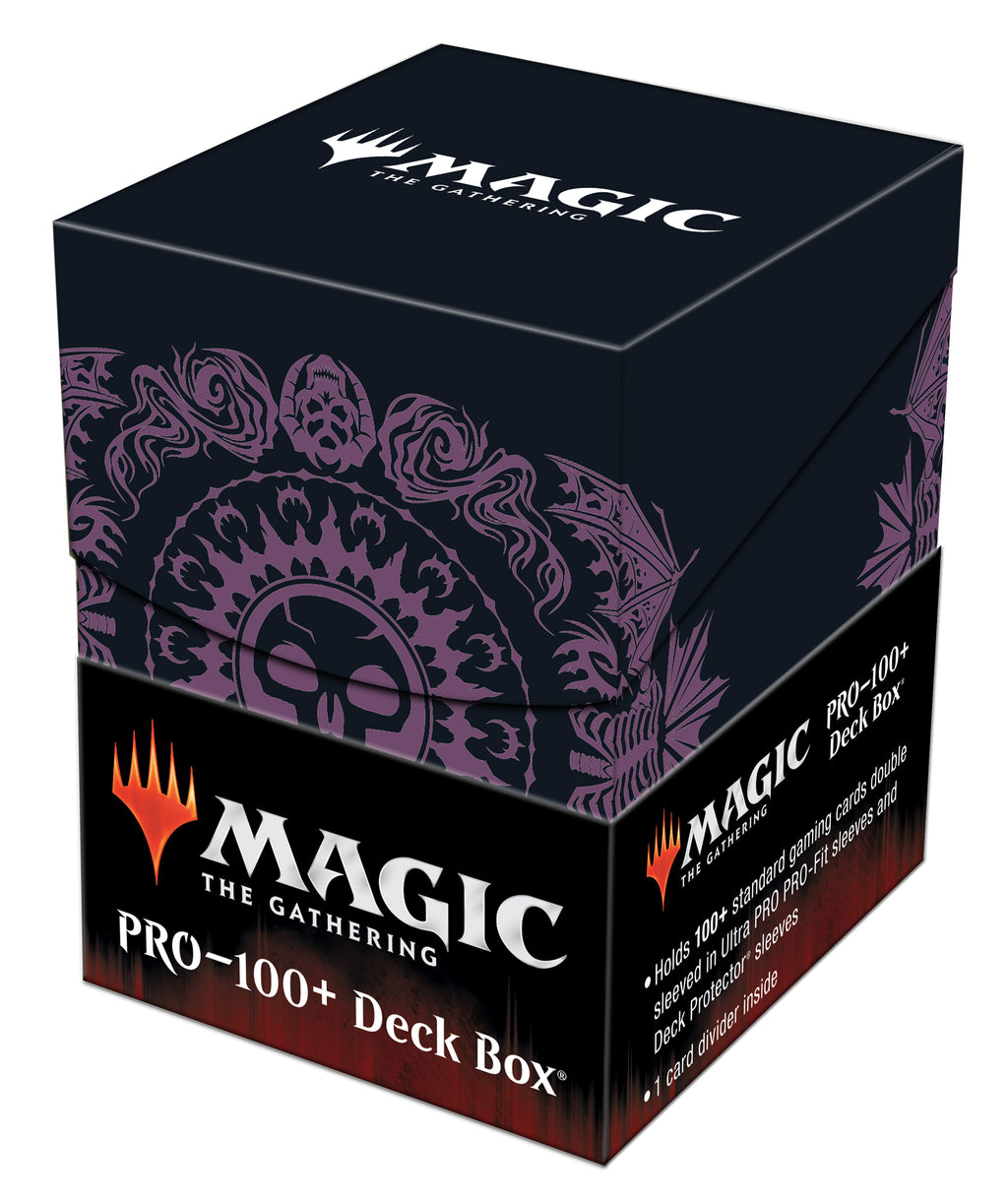 The 100+ Deck Box features vibrant, full-color artwork from Magic: The Gathering and includes a matching deck divider. Made with archival-safe, non-PVC, rigid polypropylene materials, you can store up to 100 double-sleeved cards with confidence. The self-locking lid keeps your cards securely stored when not in use, while also offering easy access. Sized for standard size trading cards.
