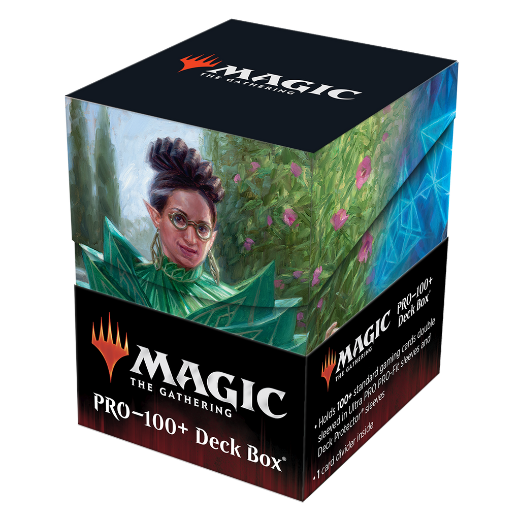 You will look too cool for mage school with this 100+ Deck Box featuring art from the Strixhaven Magic: the Gathering set! This deck box holds 100 standard size double-sleeved cards, includes a matching deck divider, and features a self-locking lid design to provide secure storage for your cards. The 100+ Deck Boxes are light, easy to carry, and made with archival-safe, rigid polypropylene material to protect your cards. With full color printing and limited production, this Deck Box is a great addition to any MTG collection. Show your allegiance with the corresponding Playmat and Deck Protector art sleeves! (sold separately)