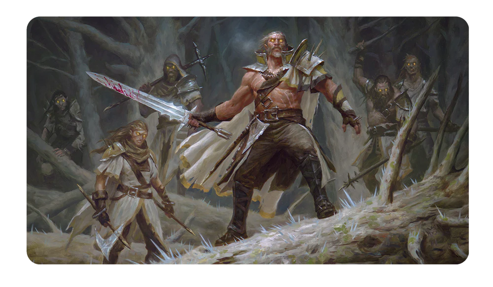 Commander Series Playmats feature popular artwork of your favorite Commanders from Magic: The Gathering! This double-sided playmat showcases full-color artwork on both sides for a unique addition to your playmat collection. Made with a soft fabric material to reduce damage to cards during play, playmats enhance the gameplay experience. With dimensions of approximately 24 in. x 13.5 in., a playmat also makes an excellent oversize mousepad for home or office.