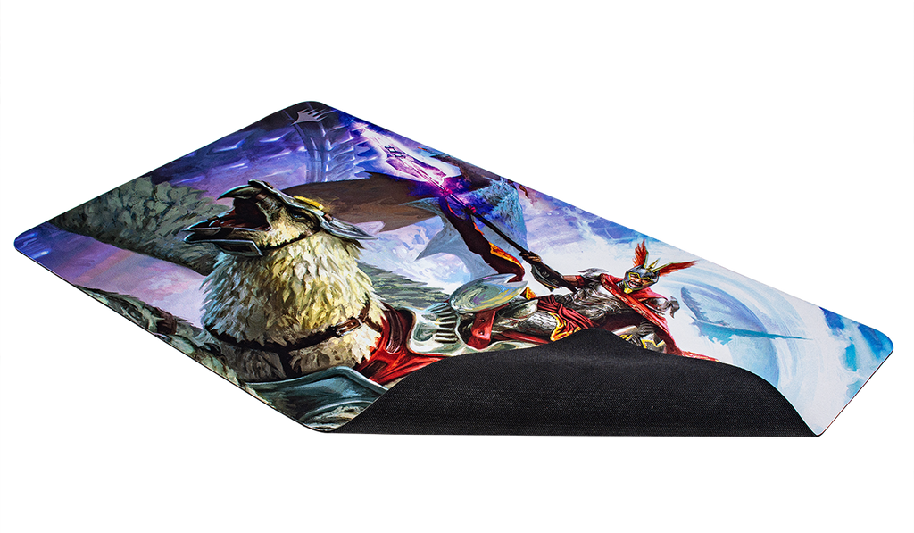 Playmats feature popular Magic: The Gathering artwork. Made with a soft fabric top to reduce damage to cards during play and a non-slip rubber backing to keep the playmat from shifting during use, playmats enhance the gameplay experience. With dimensions of approximately 24 in. x 13.5 in., a playmat also makes an excellent oversize mousepad for home or office.