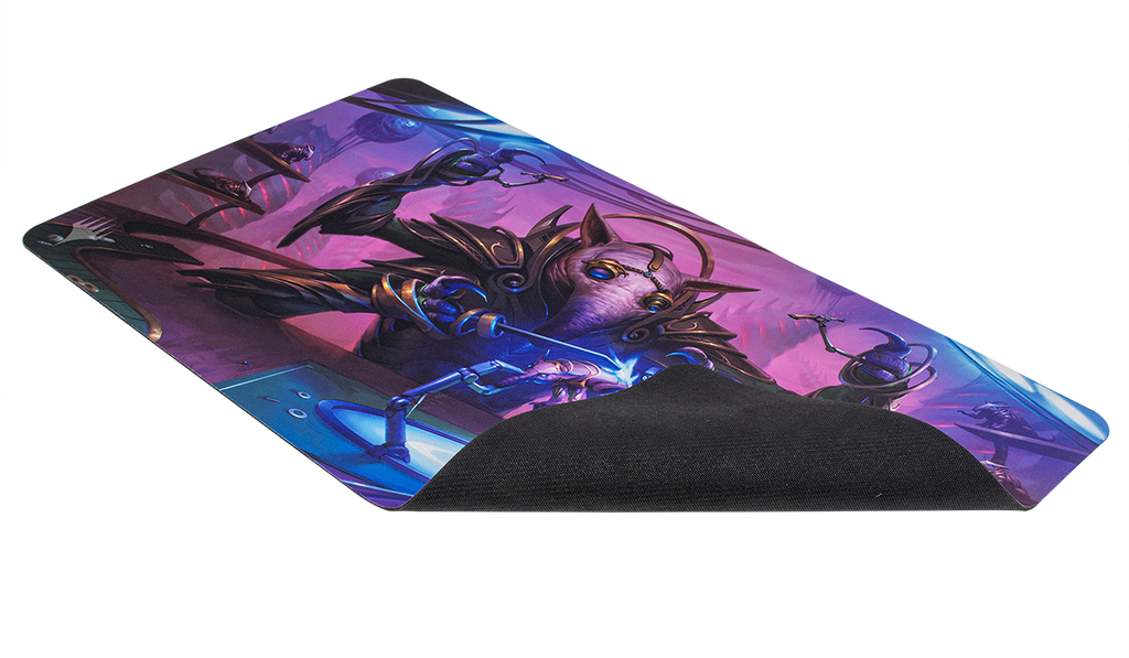 Playmats feature popular Magic: The Gathering artwork. Made with a soft fabric top to reduce damage to cards during play and a non-slip rubber backing to keep the playmat from shifting during use, playmats enhance the gameplay experience. With dimensions of approximately 24 in. x 13.5 in., a playmat also makes an excellent oversize mousepad for home or office.