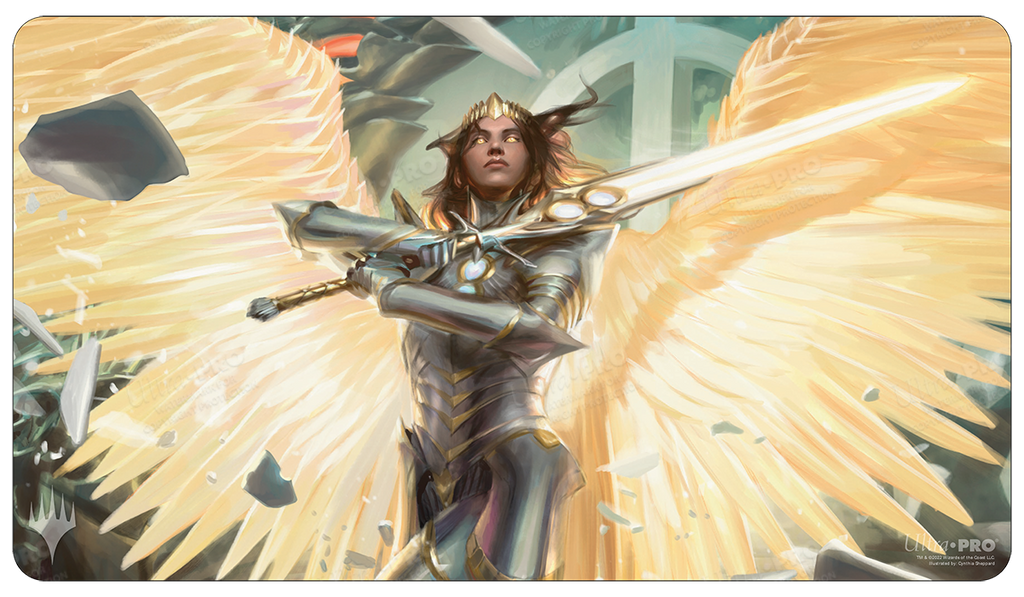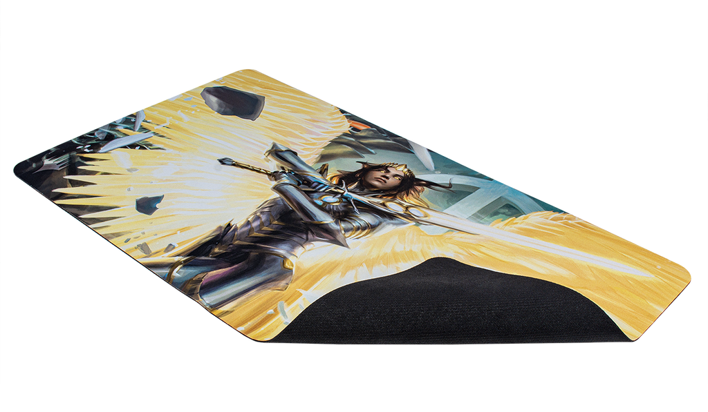 Playmats feature popular Magic: The Gathering artwork. Made with a soft fabric top to reduce damage to cards during play and a non-slip rubber backing to keep the playmat from shifting during use, playmats enhance the gameplay experience. With dimensions of approximately 24 in. x 13.5 in., a playmat also makes an excellent oversize mousepad for home or office.