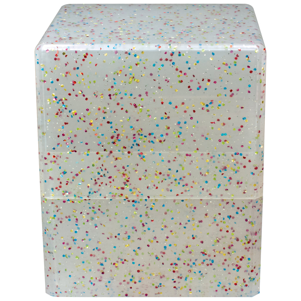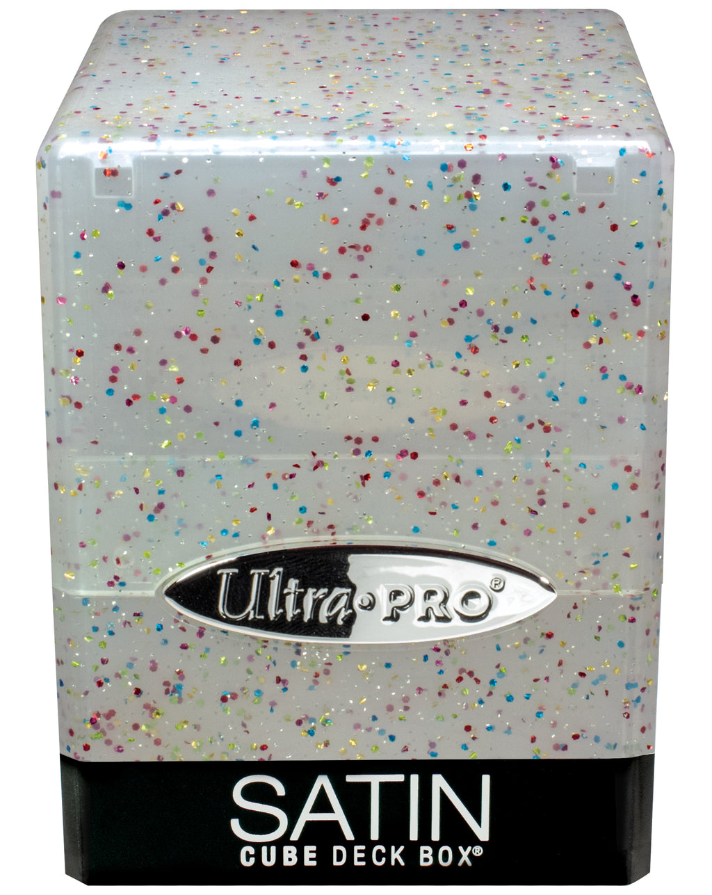 Ultra PRO's Satin Cube is compact, secure, and durable! An update to the fan favorite Satin Tower, the injection molded plastic shell is designed to store and protect 100+ standard size trading cards in Ultra PRO Deck Protector sleeves. The unique snap-fit locking mechanism keeps your valuable cards and components securely stored. This Satin Cube features a Glitter finish and is designed for mixing and matching tops with any other Satin Cube or Satin Tower!