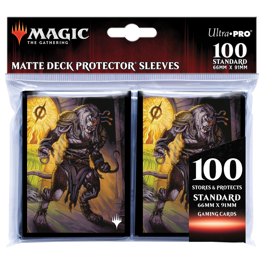 The 100ct Deck Protector sleeves for Magic: The Gathering feature full-color artwork and are made with our proprietary ChromaFusion Technology to prevent peeling. Archival-safe polypropylene materials ensure you can sleeve your cards with confidence. Sized for standard size trading cards measuring 2.5 in. x 3.5 in. The matte finish offers a glare-free, camera ready play experience!