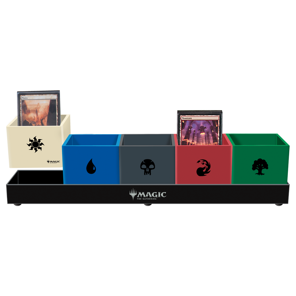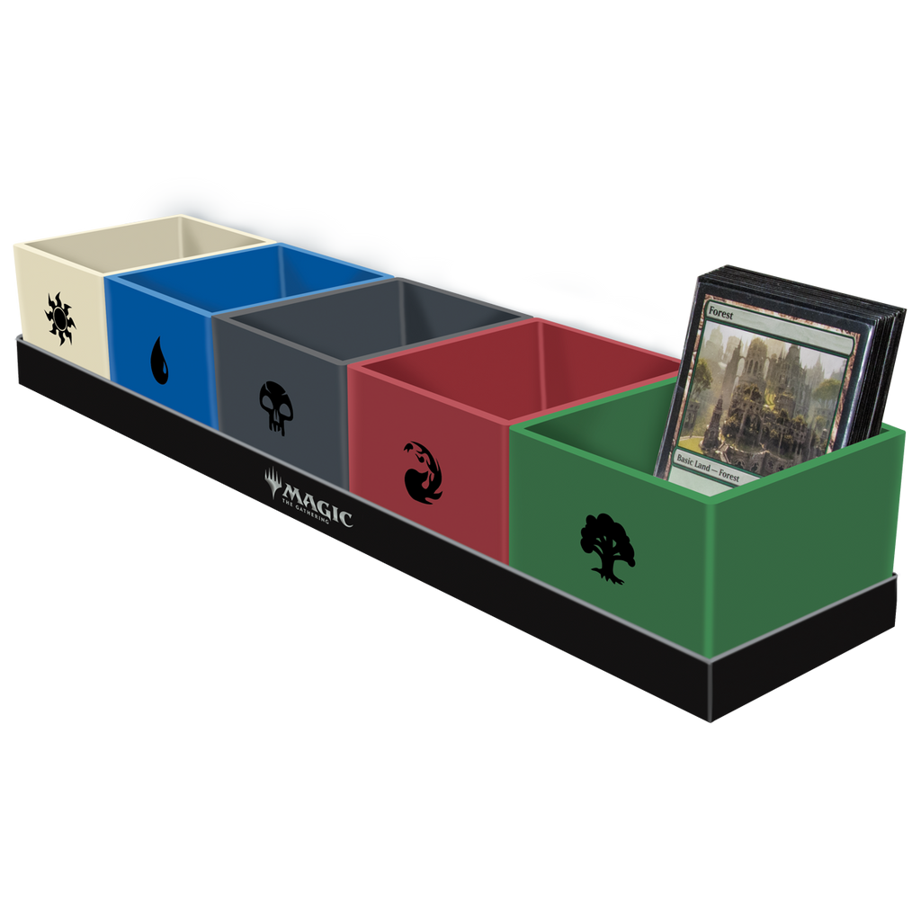 The Land Station for Magic: The Gathering has all your basic land sorting and deck-building needs covered! Five satin finish trays are labeled with mana symbols for easy organization and visual recognition. Each tray holds 100 or more cards and sits securely in a solid base. This is a must-have for any MTG drafting or deck-building space, both in-store and at home!