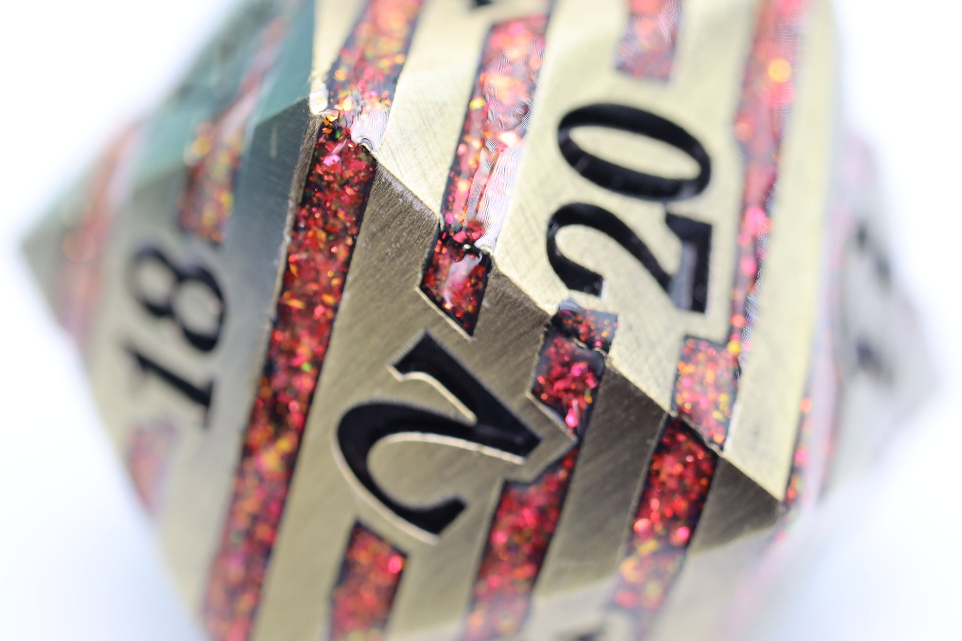 This gorgeous Foam Brain Games Extra Large Metal D20 is layered with colorful mica.