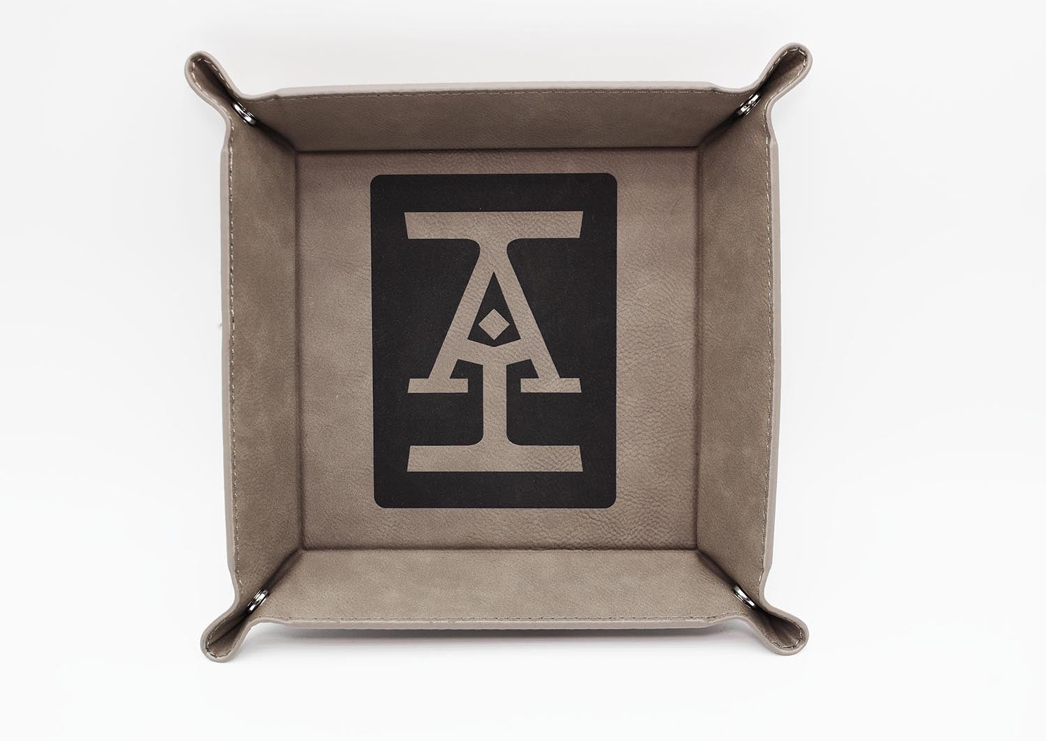 This beautiful dice tray is made with leatherette with strong metal snap buttons to make it collapsible. Perfect for the traveling Dungeon Master. Keep the Tray flat and then snap together when ready to play.