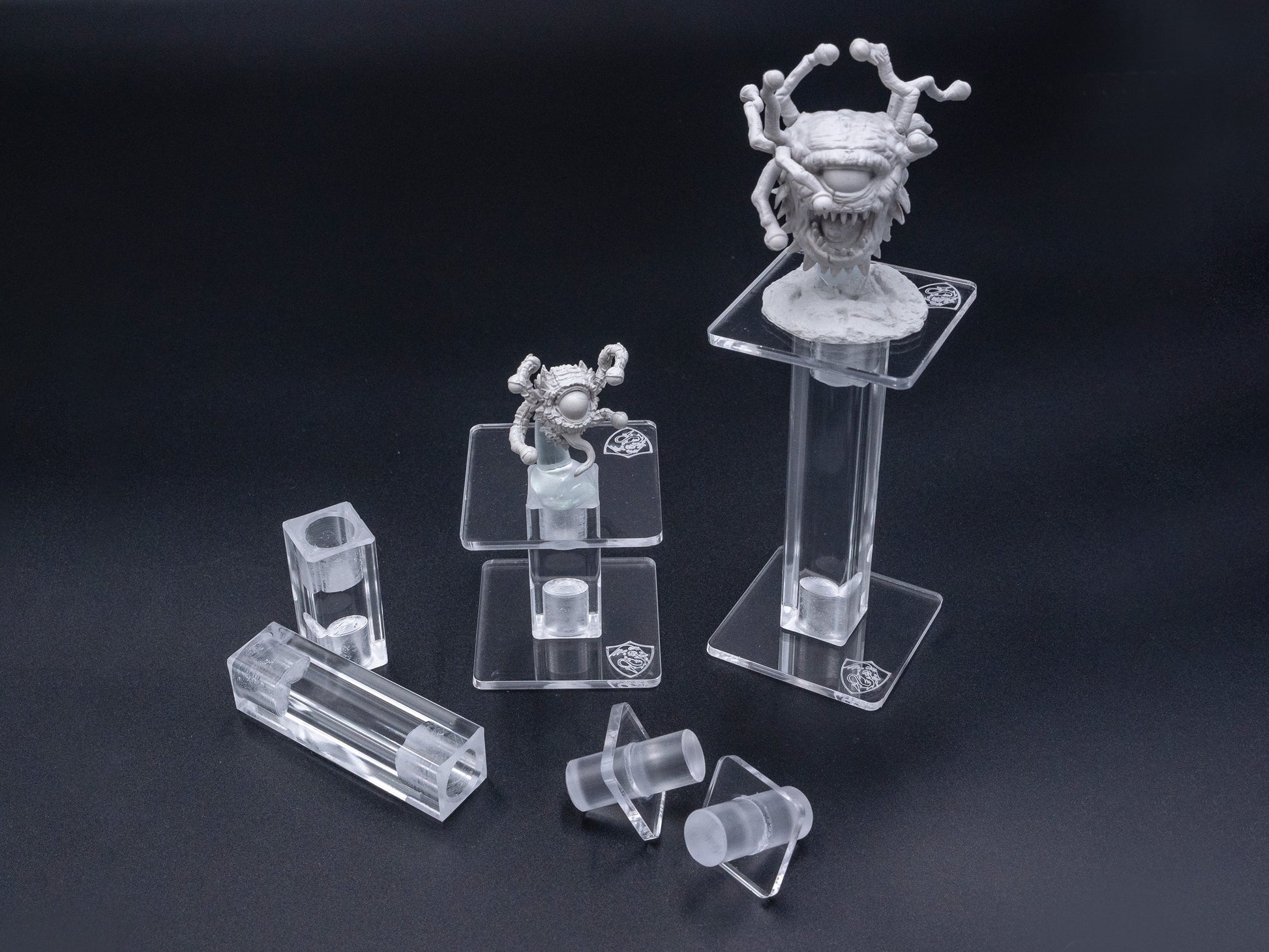 The Axe N Shield Single Flyer Kit offers both the Dungeon Master and the Player a unique and customizable opportunity to elevate your game. Imagine your Ranger has just discovered a magical set of boots. You show up to the next gaming session, take out your mini, assemble your Axe N Shield Single Flyer, and drop it on the table... just watch as all the other players smile from ear to ear and a gasp escapes your Dungeon Masters mouth! In the same manner as all of our products, each Single Flyer is completely customizable for platform and height, exchanging tops, bottoms and rods to achieve the perfect 'in-game' experience!