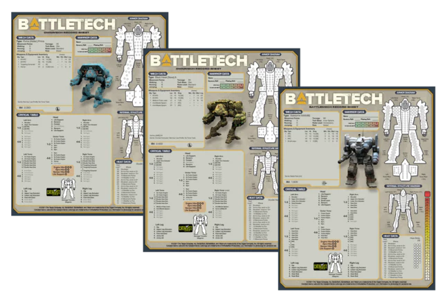 The Wave 1 selection for Premium Record Sheets is the same pack released during the Clan Invasion campaign, with 32 BattleTech full sheets and 32 Alpha Strike half sheets.