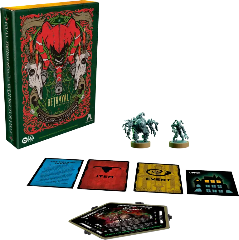 Take a deeper dive into the story and dark secrets of the abandoned House on the Hill 3rd Edition, haunted house traitor board game. In the Evil Reigns in the Wynter's Pale The Yuletide Tale expansion pack, players interact with the explorers of the base game with 2 holiday-themed characters. Because of a magical mishap, the cold-hearted visitor and his henchman have assumed identities of other beloved holiday characters and have acquired numerous magical powers. The expansion includes 2 highly detailed figures on removable bases, double-sided character board, 2 room tiles, 2 haunt books, story prologue book, 4 game cards, scenario card, and 4 clips. Gather friends for a game night of monsters, miniatures, and modular board pieces in this immersive, story-driven cooperative board game for 3-6 players, ages 12 and up! Requires Betrayal at HOTH 3rd Edition to Play (sold separately).
