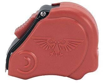 The Games Workshop Tape Measure extends to 10ft/120", is marked in both centimetres and inches, and features an auto-locking blade. A soft rubber exterior provides a comfortable grip and is embossed with the Games Workshop logo.