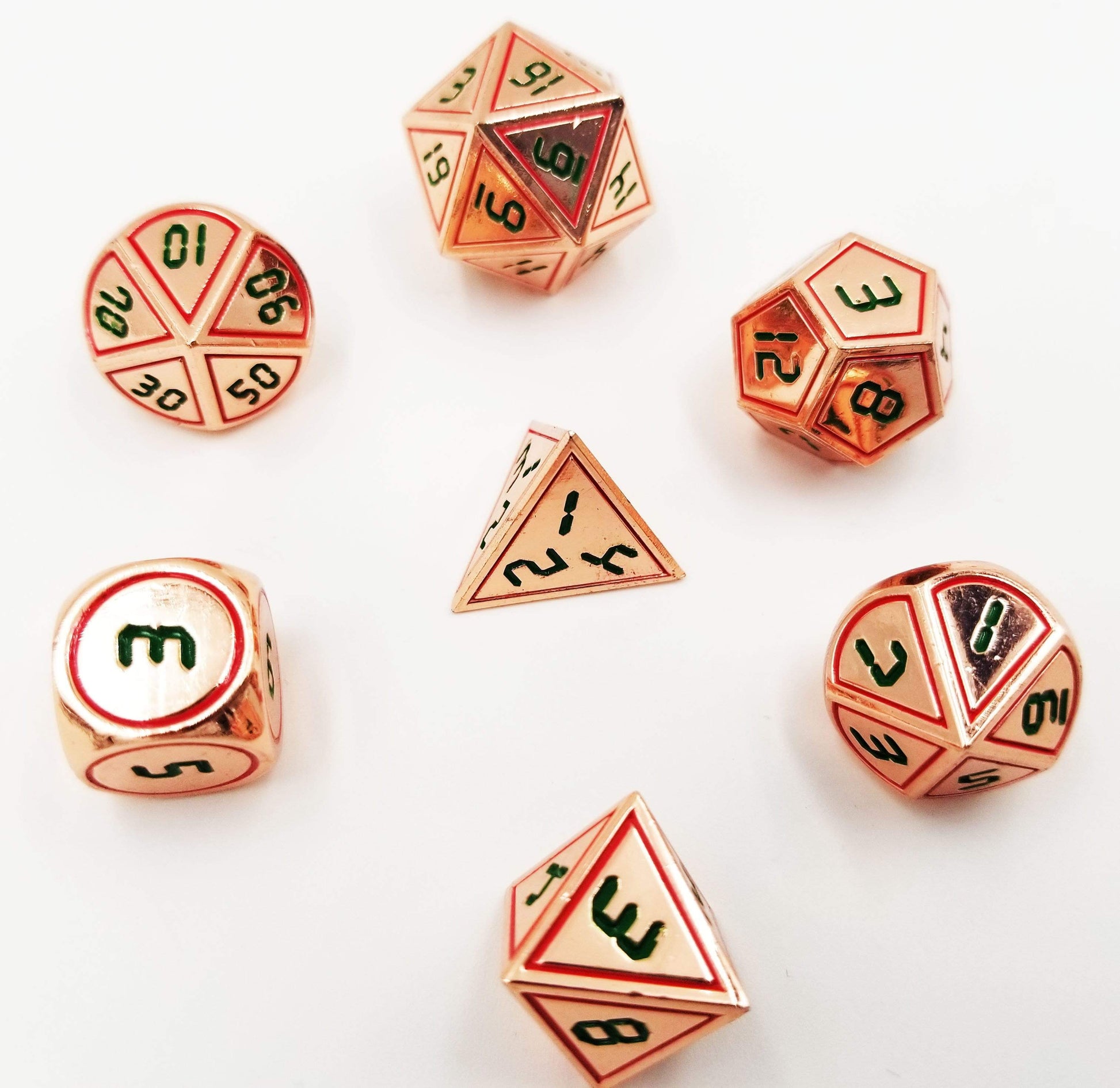 Digital Copper Red with Green RPG Dice Set