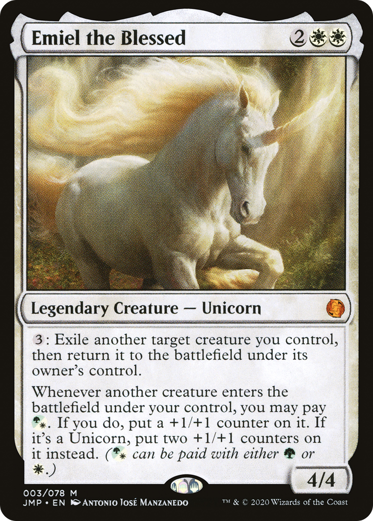 Whenever another creature enters the battlefield under your control, you may pay {G/W}. If you do, put a +1/+1 counter on it. If it's a Unicorn, put two +1/+1 counters on it instead. ({G/W} can be paid with either {G} or {W}.)