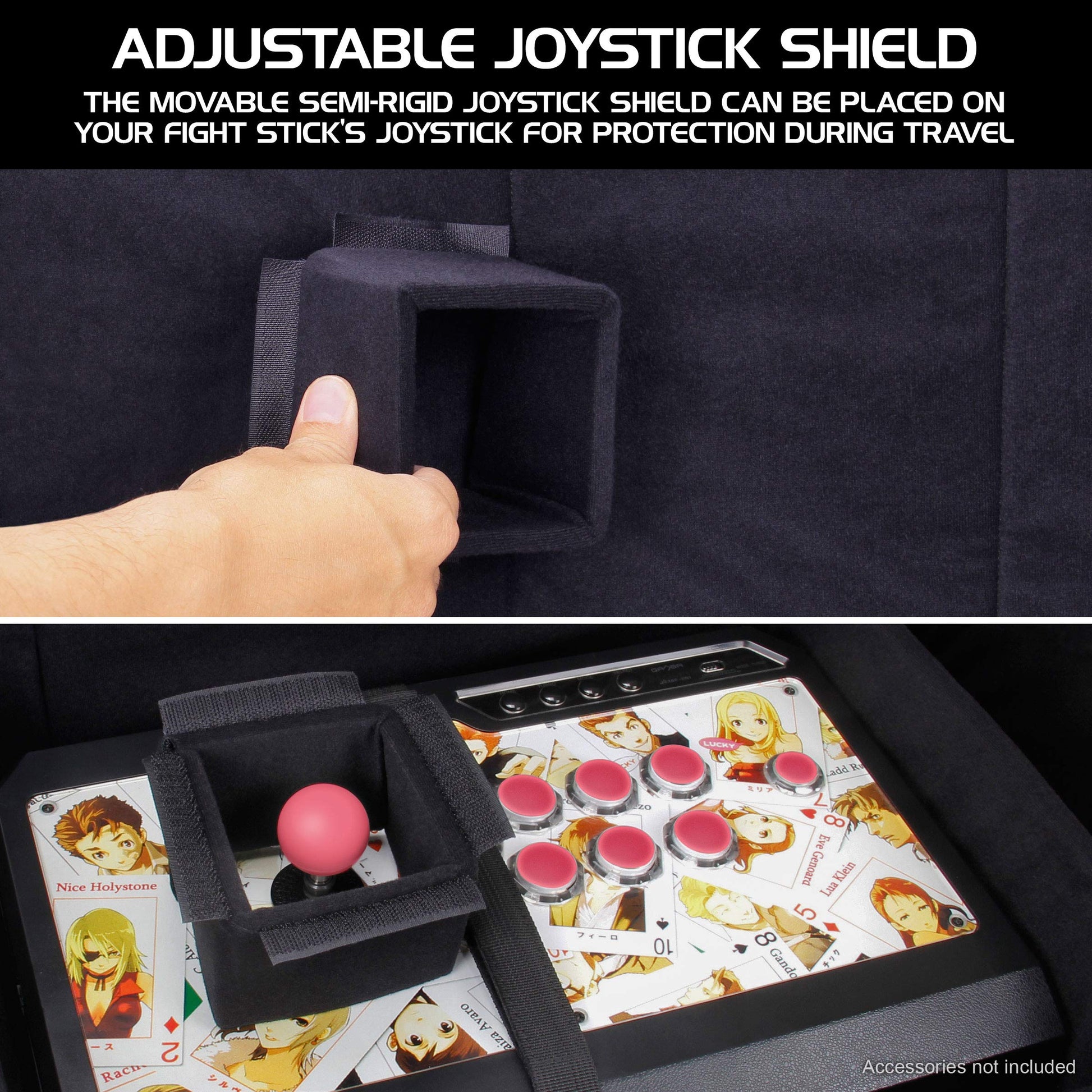 ADJUSTABLE JOYSTICK SHIELD: Use the movable joystick guard to keep your favorite fight stick safe during travel. Simply place the shield over your joystick and close up the backpack