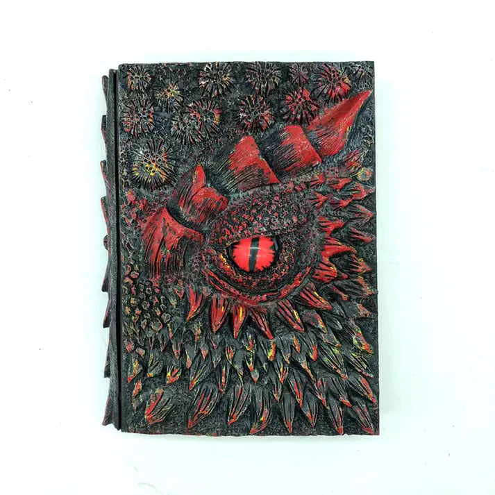 Beautifully sculpted journal has a dragon motif on both covers and spine. Journal pages are smooth unlined manila and replaceable. Great for using as a sketchbook or making dungeon notes.