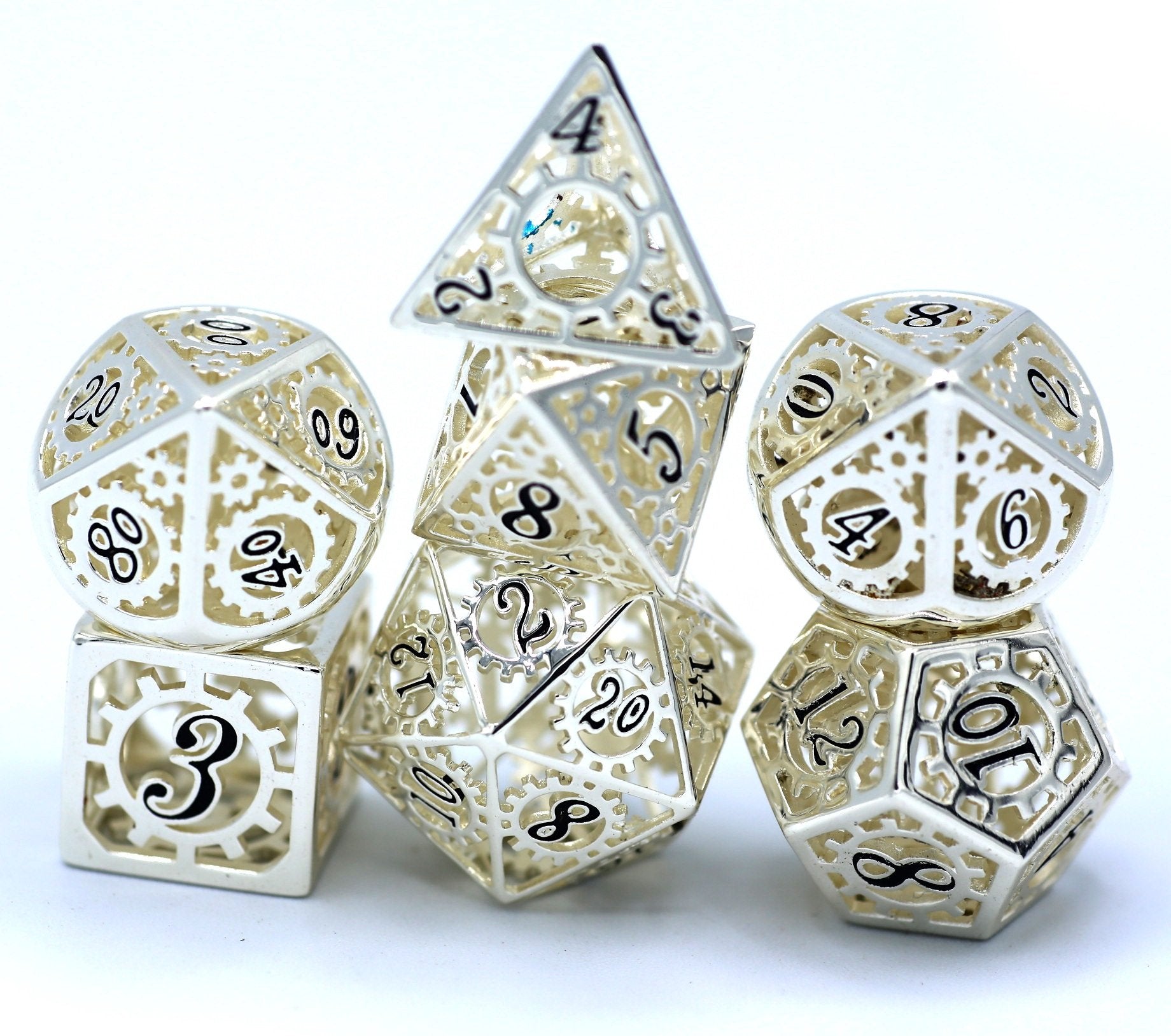 Hymgho Hollow Metal Gear Dice - Shiny Silver and Black Polyhedral Dice (7)