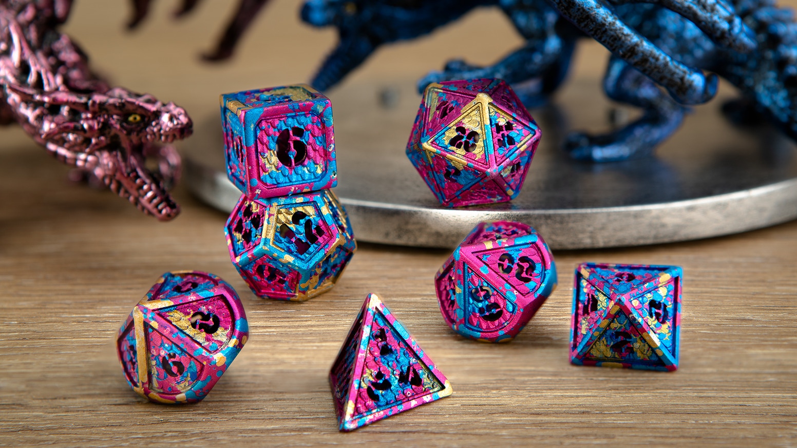 Hymgho Metal Hollow Wyvern Dice - Aluminium Polyhedral Set (7)