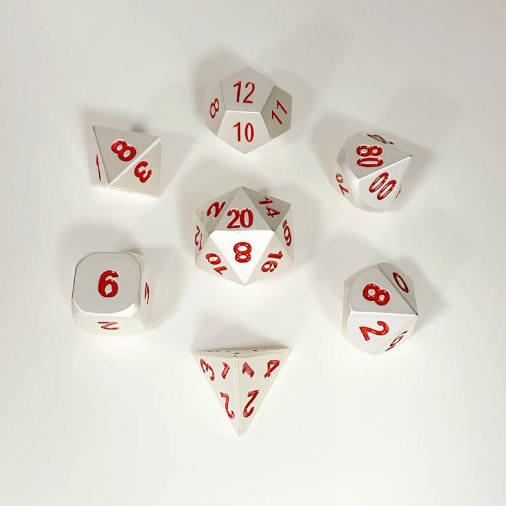 Hymgho Solid Metal Dice - Matte Silver/Red Polyhedral Set (7)