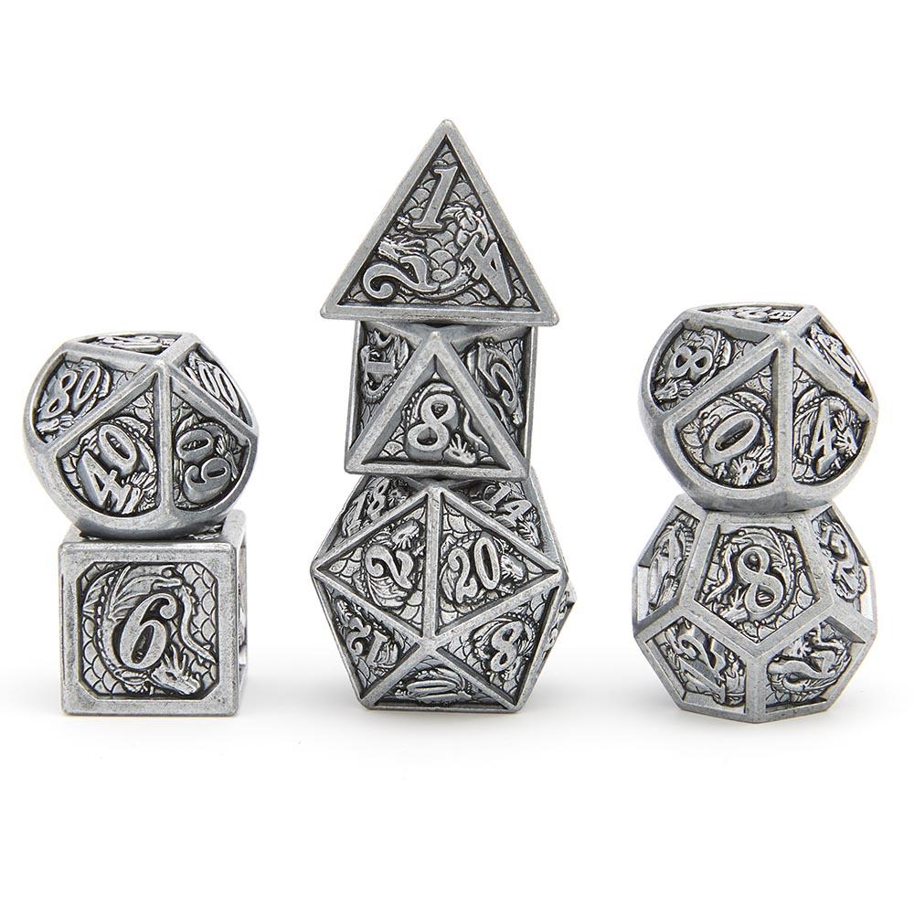 Hymgho Solid Metal Dragon Dice - Ancient Iron Polyhedral Set (7)