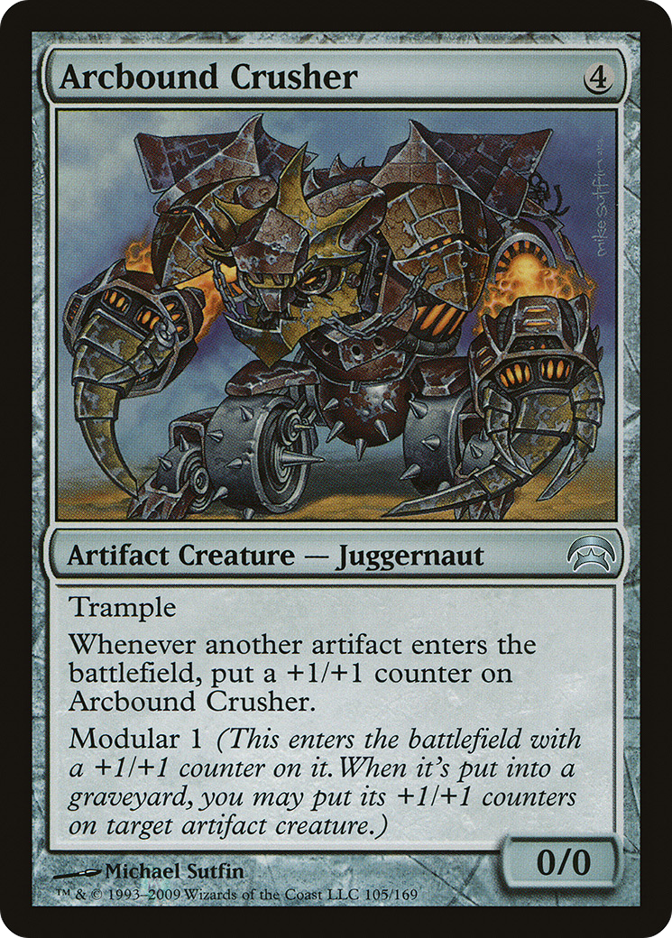 Whenever another artifact enters the battlefield, put a +1/+1 counter on Arcbound Crusher.
