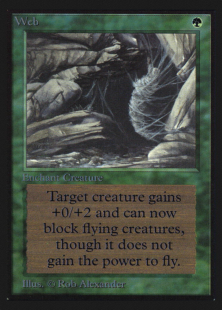 Enchanted creature gets +0/+2 and has reach. (It can block creatures with flying.)