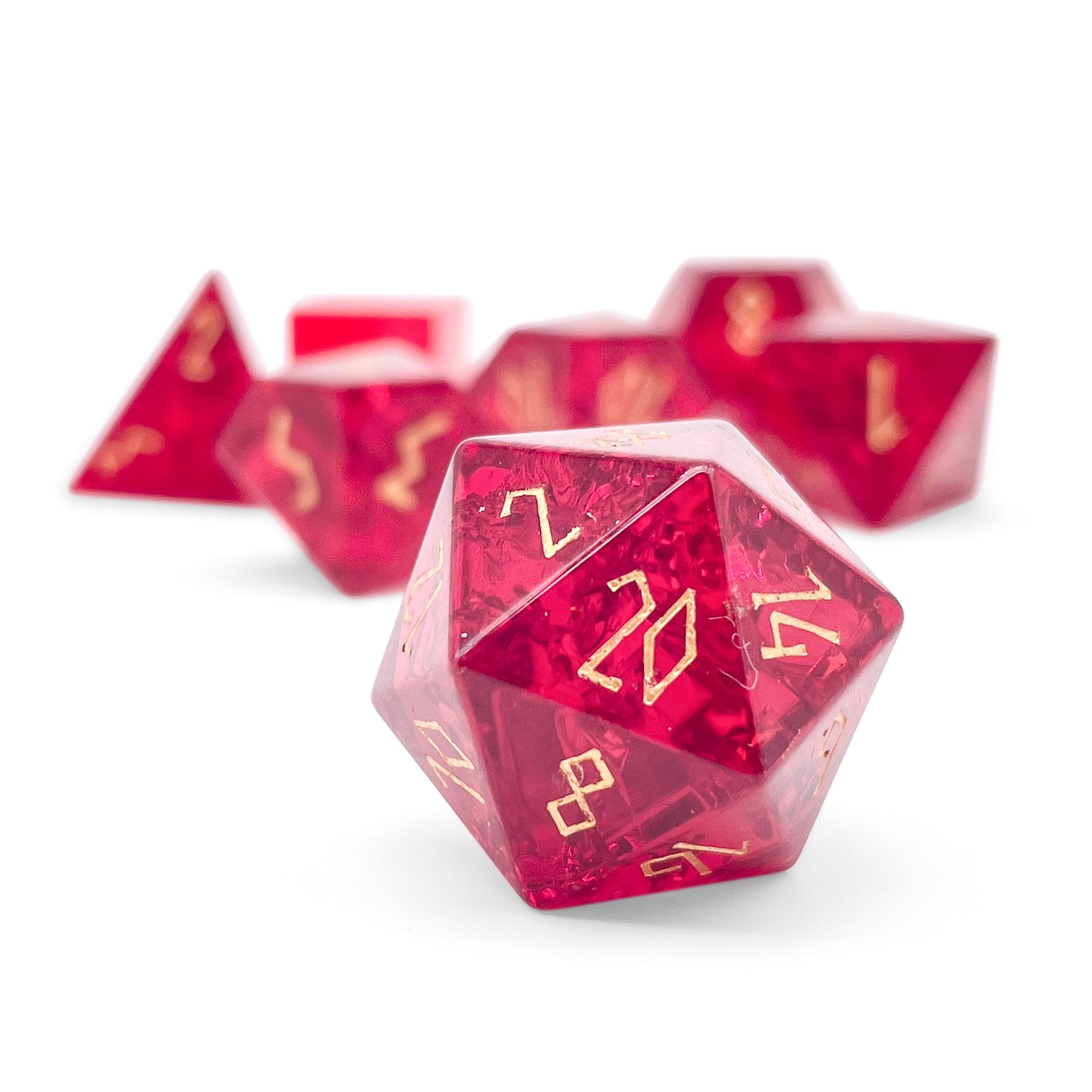 Norse Foundry 7 Die Glass RPG Dice Set: Shattered Garnet Zircon Glass