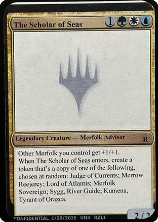 When The Scholar of Seas enters the battlefield, choose one of the following cards at random and create a token that's a copy of it: