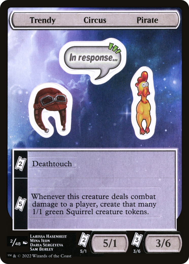 {TK}{TK}{TK}{TK}{TK} — Whenever this creature deals combat damage to a player, create that many 1/1 green Squirrel creature tokens.