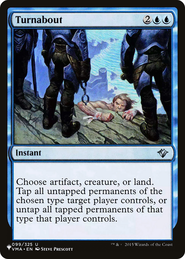 Choose artifact, creature, or land. Tap all untapped permanents of the chosen type target player controls, or untap all tapped permanents of that type that player controls.