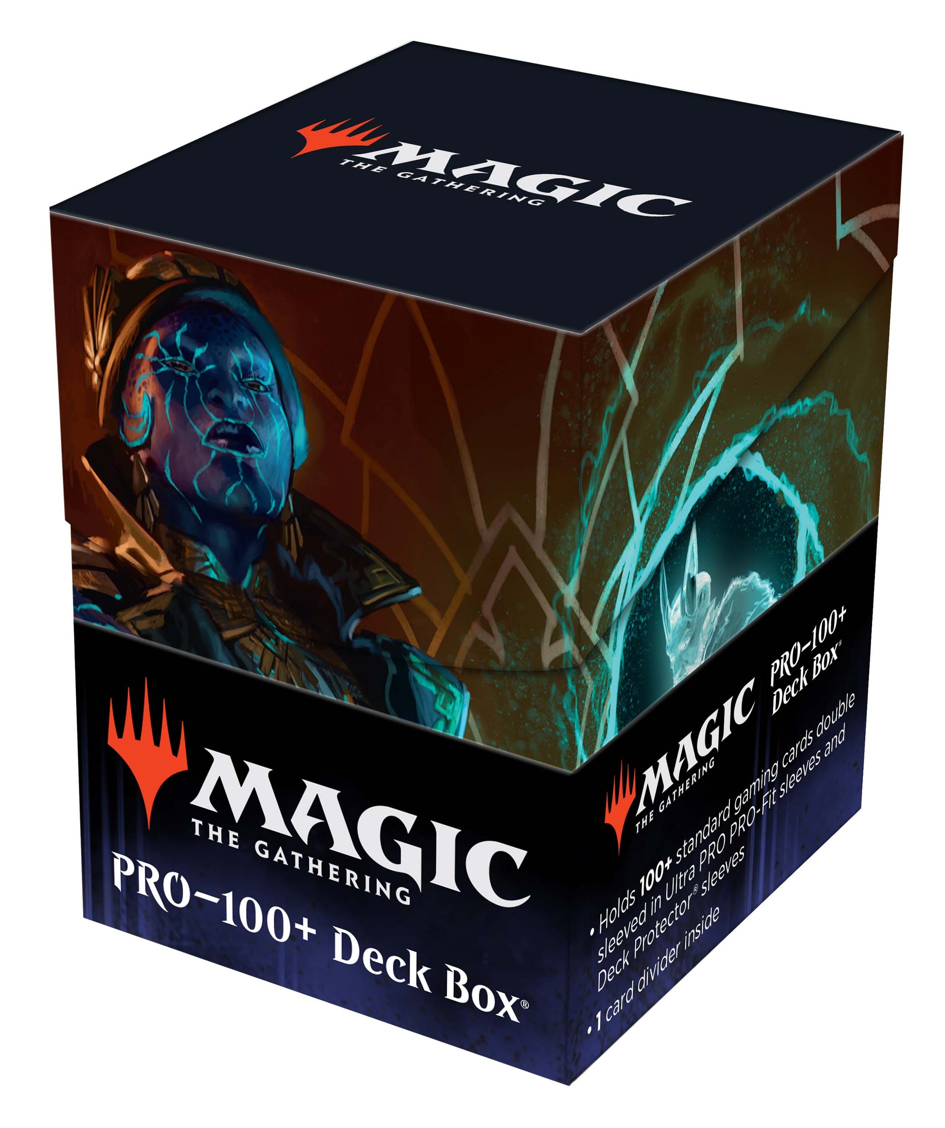 The 100+ Deck Box features vibrant, full-color artwork from Magic: The Gathering and includes a matching deck divider. Made with archival-safe, non-PVC, rigid polypropylene materials, you can store up to 100 double-sleeved cards with confidence. The self-locking lid keeps your cards securely stored when not in use, while also offering easy access. Sized for standard size trading cards.