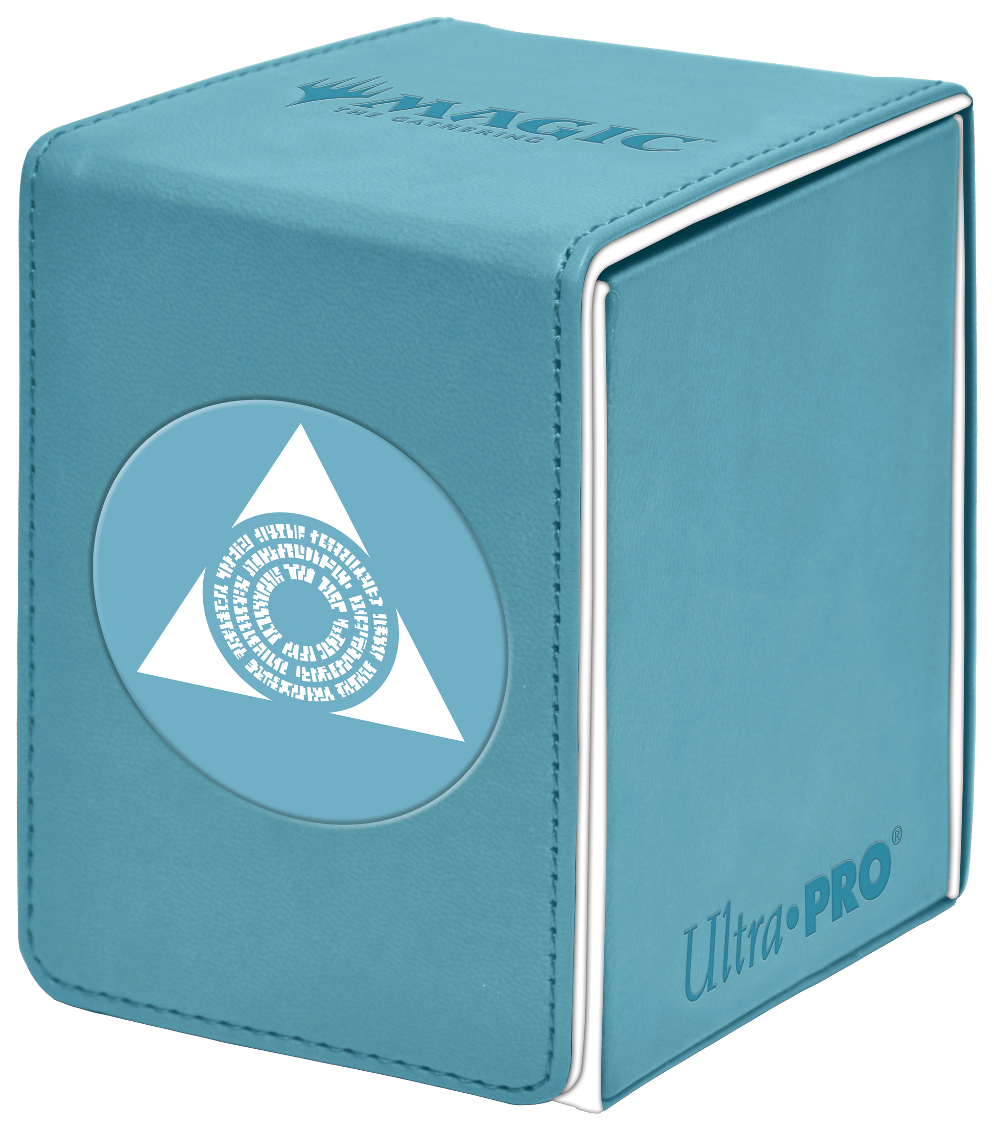 Show off your guild allegiance with the Magic: The Gathering Guilds of Ravnica Alcove Flip Box! This premium storage case is made with leatherette exterior and matte interior that matches your favorite guild's colors. Your guild's symbol is proudly displayed on the exterior with a premium 3-D patch sewn to the flap. The interior of the flap is decorated with the guild symbol in a glossy finish. This Alcove Flip Box can hold up to 100 double sleeved cards secured by strong magnetic closures. The lid can be undone on both sides of the box to reveal dual thumb notches for easy access to your deck of cards. The Guilds of Ravnica Alcove Flip Box is a great storage device for organizing and protecting your collection at home or on-the-go at your next gaming session!