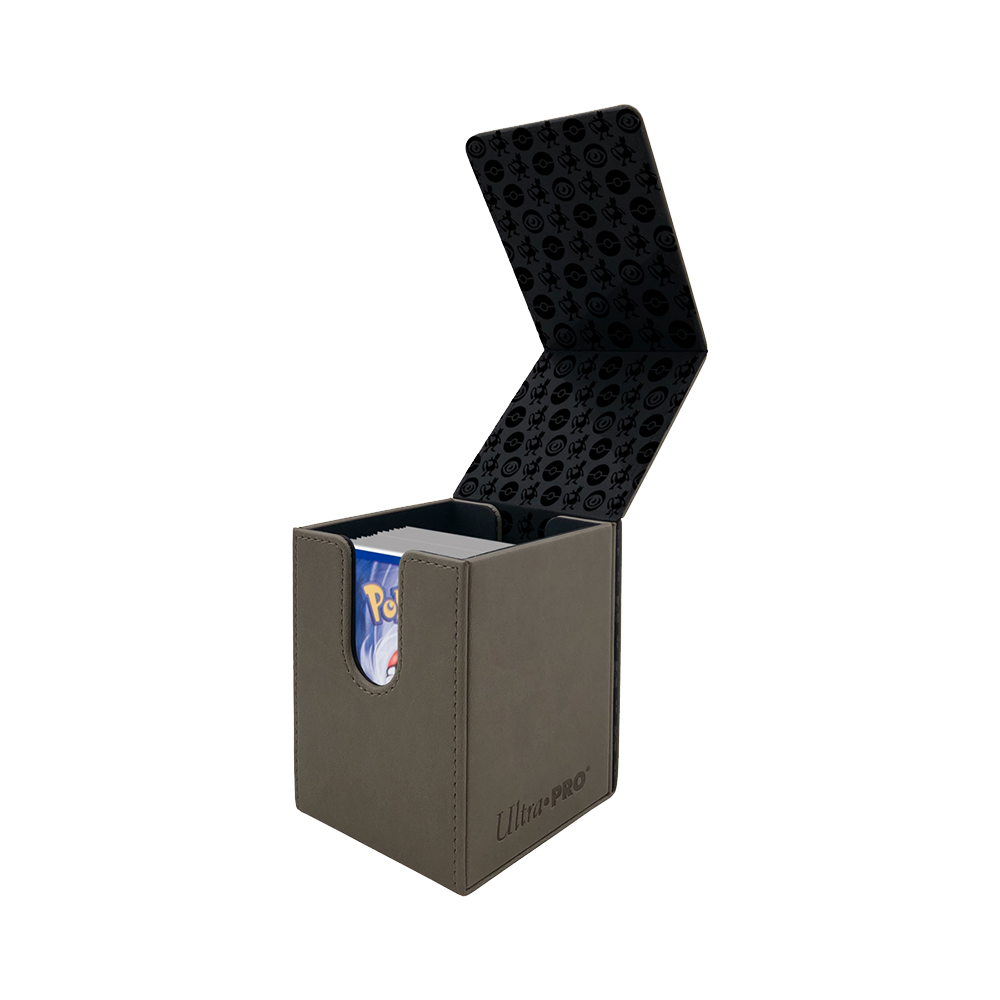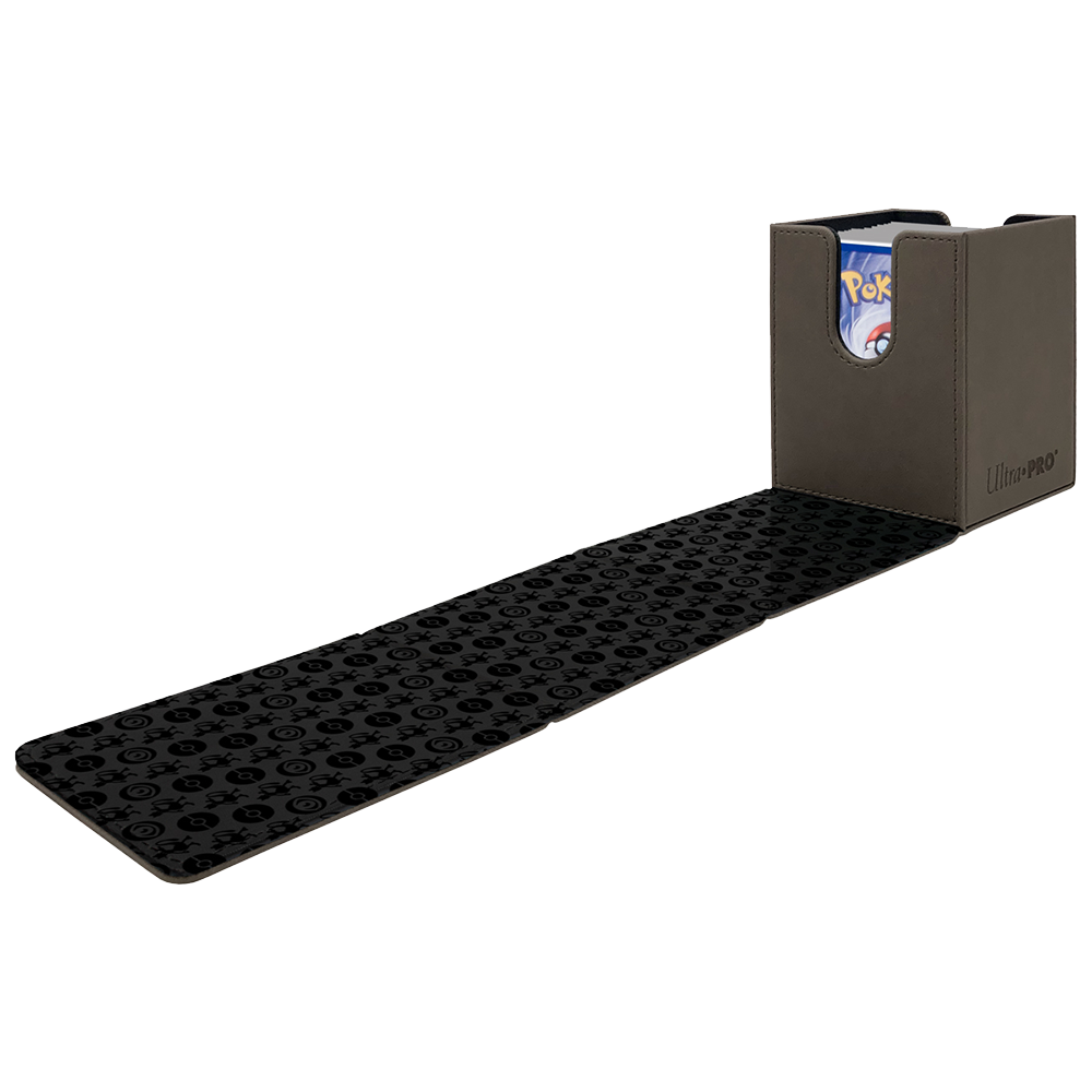 Become a legend with one of the most iconic legendary Pokémon of all time. The Mewtwo Alcove Flip Box features a debossed character outline over a purple foil silhouette on a premium leatherette material. These deck boxes hold up to 100 double-sleeved cards and the dual thumb notches make it easy to remove your cards when you are ready to battle. The flip lid is secured shut with several strong magnets, ensuring cards are protected when not in use. This is the perfect addition to any Pokémon trainer's collection!
