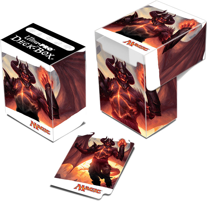Protect your cards and bring them in style to your next Friday Night Magic with this Deck Box featuring "Ob Nixilis Reignited" from the Battle of Zendikar release of the wildly popular trading card game Magic: The Gathering! Ultra PRO's Deck Boxes are designed to hold and protect your trading card game cards. This Deck Box is made from archival-safe polypropylene materials and holds up to 80 standard (Magic) size cards in Deck Protector sleeves. The box is printed with beautiful full color artwork and comes with a bonus deck divider.