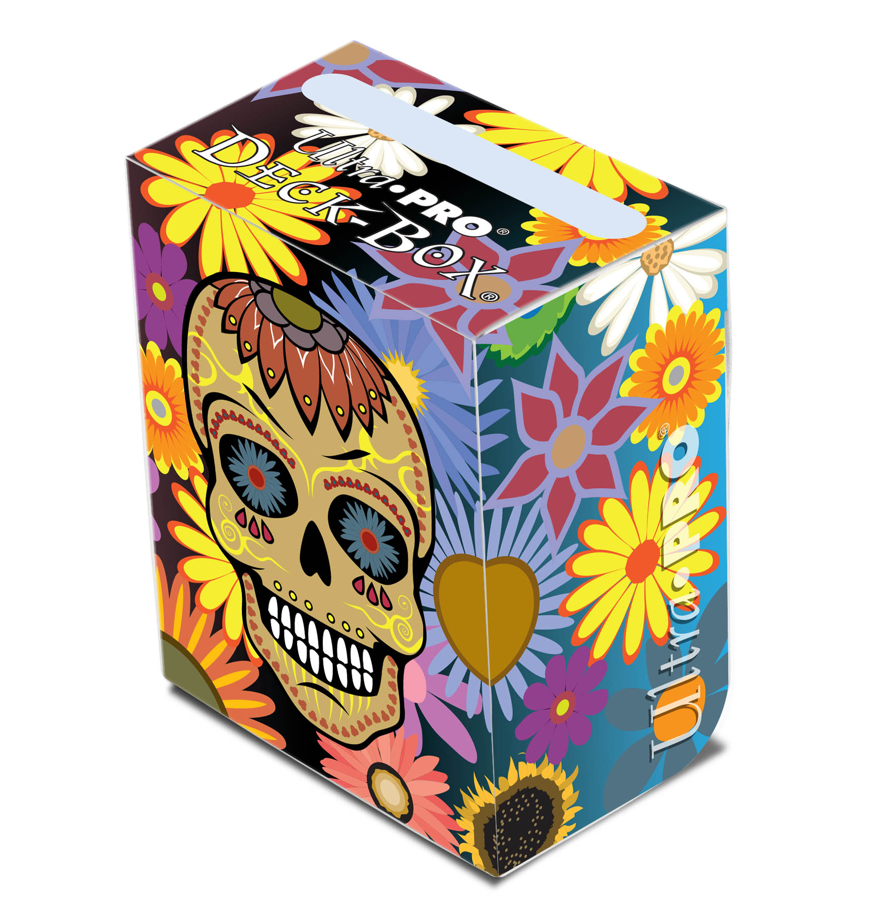 Protect your cards and store them in style with this Deck Box featuring UltraPRO original Dia De Los Muertos series with Yellow Skull. Ultra PRO's Deck Boxes are designed to hold and protect your cards from trading card games. This Deck Box is made from archival-safe polypropylene materials and holds up to 80 standard size cards in Deck Protector sleeves. The box is printed with beautiful full color artwork and comes with a bonus deck divider.