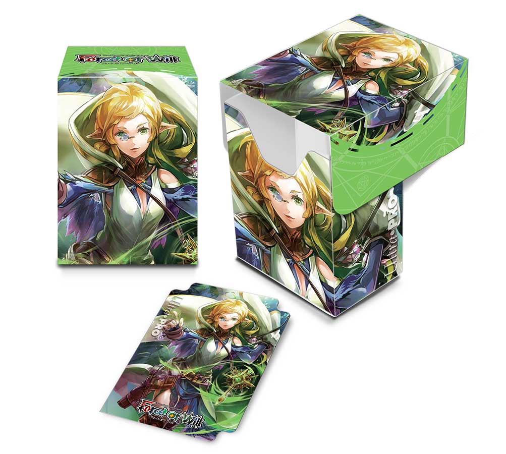 Sized to fit standard-size game cards in Deck Protector sleeves. The outside of this Deck Box is printed in full color with the Force of Will artwork featuring Fiethsing, Master Magus of Holy Wind.