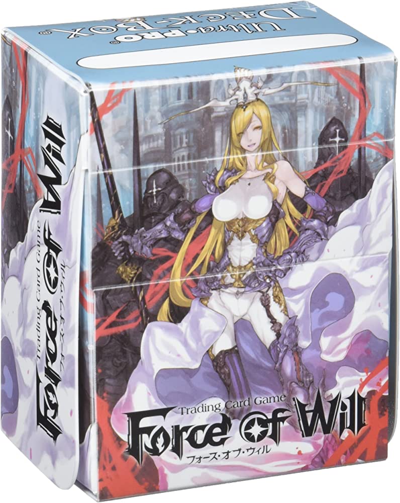 Sized to fit standard-size game cards in Deck Protector sleeves. The outside of this Deck Box is printed in full color with the Force of Will artwork featuring Valentina.