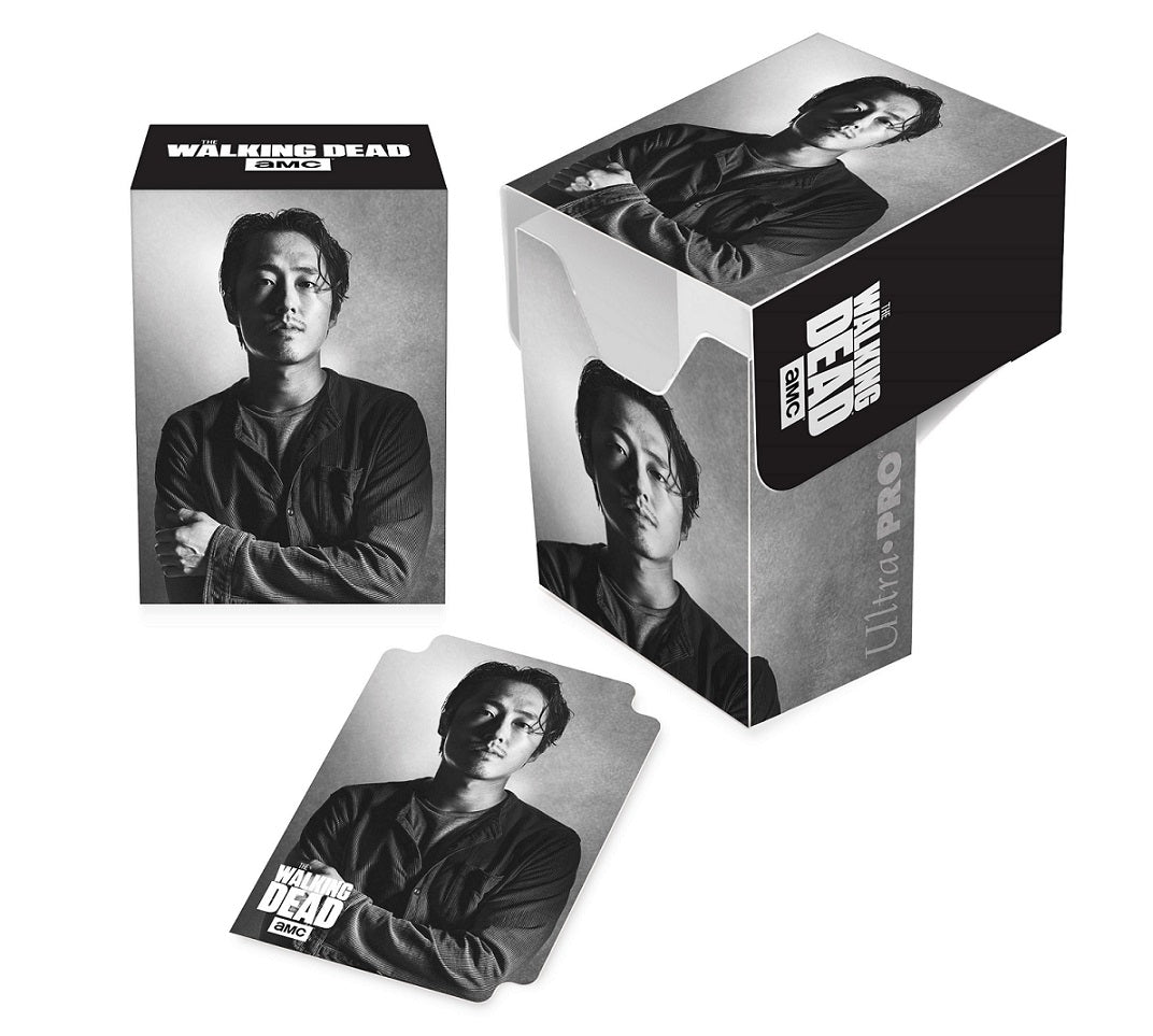 Protect your cards and store them in style with this Official The Walking Dead Deck Box featuring Glenn. Ultra PRO's Deck Boxes are designed to hold and protect your cards from popular trading card games such as Magic: The Gathering, Yu-Gi-Oh!, and Pokémon. This Deck Box is made from archival-safe polypropylene materials and holds up to 80 standard (Magic) size cards in Deck Protector sleeves. The box is printed with beautiful full-color artwork and comes with a bonus deck divider.