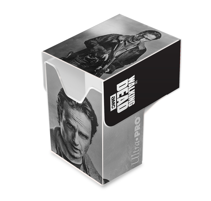 Protect your cards and store them in style with this Official The Walking Dead Deck Box featuring Rick. Ultra PRO's Deck Boxes are designed to hold and protect your cards from popular trading card games such as Magic: The Gathering, Yu-Gi-Oh!, and Pokémon. This Deck Box is made from archival-safe polypropylene materials and holds up to 80 standard (Magic) size cards in Deck Protector sleeves. The box is printed with beautiful full-color artwork and comes with a bonus deck divider.
