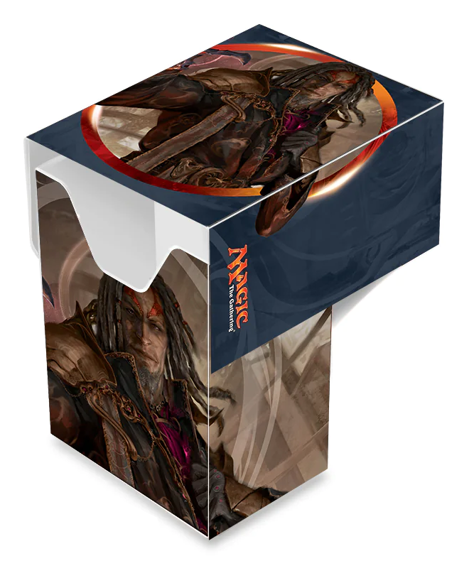 Keep your gaming cards safe with this official Magic the Gathering Deck Box, featuring Tezzeret the Schemer. Designed as a toploading card holder with full flap cover with uninterrupted artwork. Holds 82 cards in Deck Protectors sleeves and is made from archival-safe, durable polypropylene material. Includes bonus deck divider.