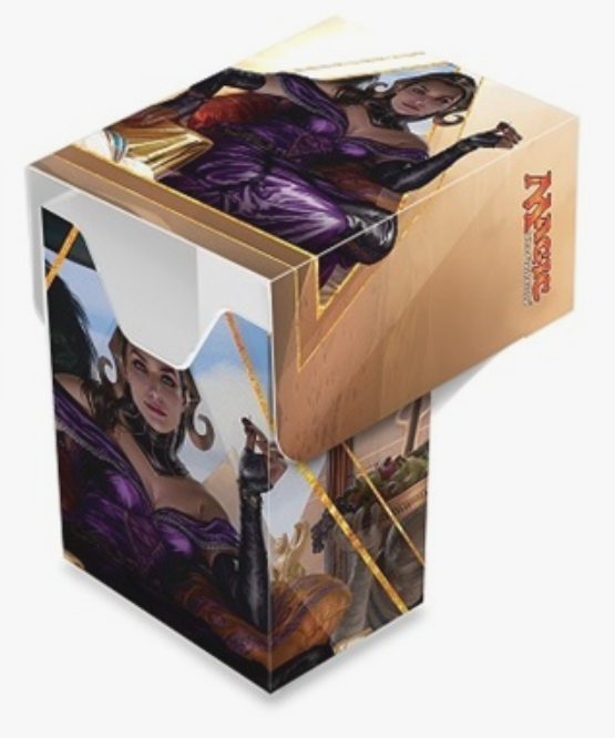 Keep your gaming cards safe with this official Magic the Gathering Deck Box, featuring Liliana, Death's Majesty. Designed as a toploading card holder with full flap cover with uninterrupted artwork. Holds 82 cards in Deck Protectors sleeves and is made from archival-safe, durable polypropylene material. Includes bonus deck divider.
