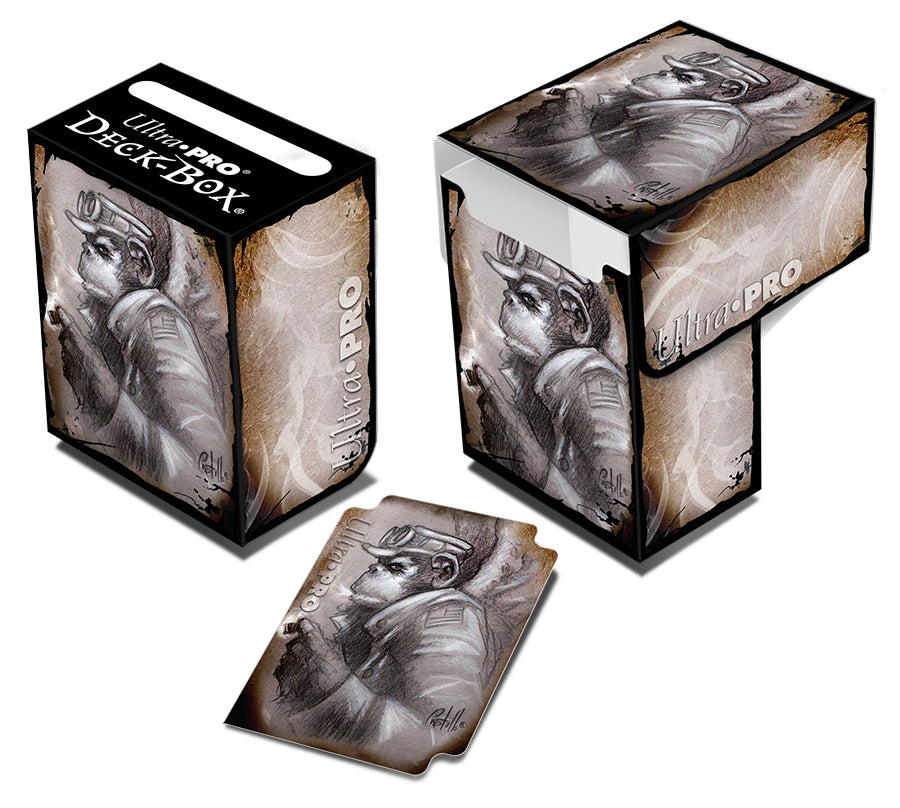 Protect your cards and store them in style with this Deck Box featuring Monkey General from Darkside of Oz series by Tommy Castillo. Ultra PRO's Deck Boxes are designed to hold and protect your cards from popular trading card games such as Magic: The Gathering, Yu-Gi-Oh!, and Pokémon. This Deck Box is made from archival-safe polypropylene materials and holds up to 80 standard (Magic) size cards in Deck Protector sleeves. The box is printed with beautiful full-color artwork and comes with a bonus deck divider.