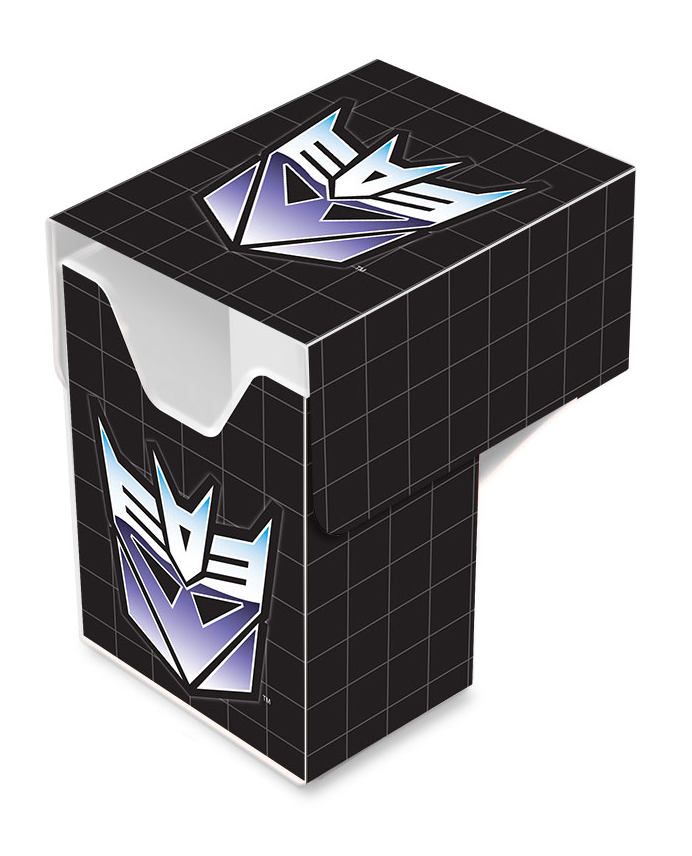 Protect your cards and store them in style with this Official Transformers Deck Box featuring the iconic Decepticon symbol. Ultra PRO's Deck Boxes are designed to hold and protect your cards from popular trading card games such as Magic: The Gathering, Yu-Gi-Oh!, and Pokémon. This Deck Box is made from archival-safe polypropylene materials and holds up to 80 standard (Magic) size cards in Deck Protector sleeves. The box is printed with beautiful full-color artwork and comes with a bonus deck divider.