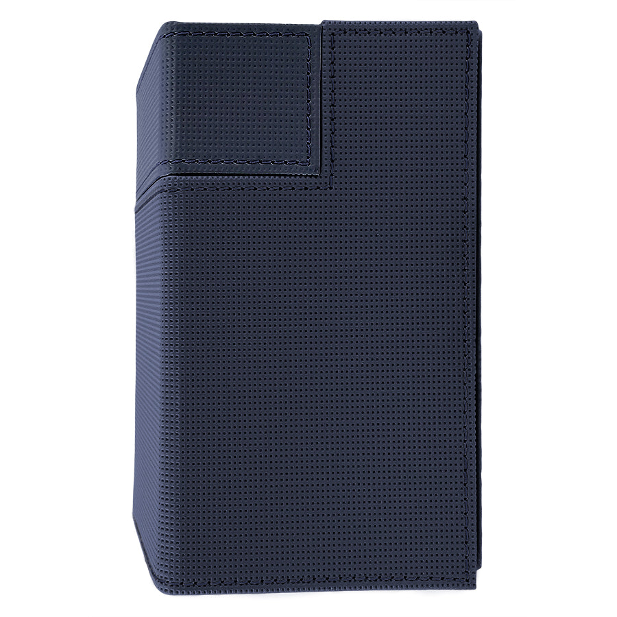 The Deck Box's main compartment holds over 75 standard size double-sleeved cards. A separate, modular compartment at the top can be used for dice & tokens. Both compartments are removable to help organize contents in compartments. Black interior lining with silver Ultra PRO logo. Extra strong magnetic closure for security. Cards, sleeves, and dice not included. Dual color with reverse accent stitching presents a premium, unique style.