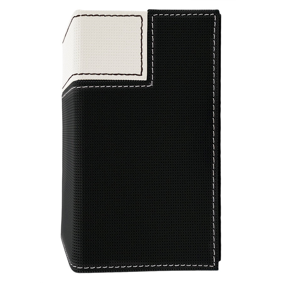 The Deck Box's main compartment holds over 75 standard size double-sleeved cards. A separate, modular compartment at the top can be used for dice & tokens. Both compartments are removable to help organize contents in compartments. Black interior lining with silver Ultra PRO logo. Extra strong magnetic closure for security. Cards, sleeves, and dice not included. Dual color with reverse accent stitching presents a premium, unique style.