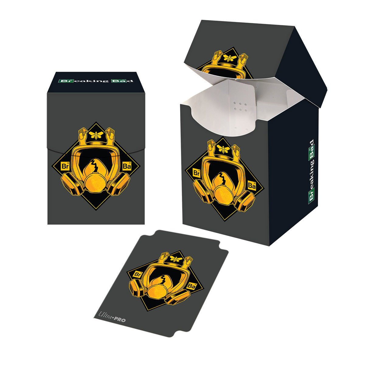 Be the One Who Knocks with these officially licensed Breaking Bad accessories! Official licensed Deck Box for Breaking Bad. Holds and protects 100+ standard size trading card game cards. Perfect for popular card games such as Magic: The Gathering, Yu-Gi-Oh! and Pokémon. Made with archival-safe, polypropylene materials and designed with a self-locking lid. Includes a bonus, full color deck divider.